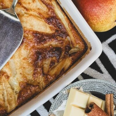 Un clafoutis fondant qui marie poire et chocolat blanc dans une version automnale et moderne.Simple à préparer, idéal pour un dessert réconfortant à partager.